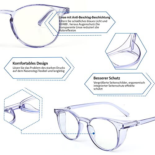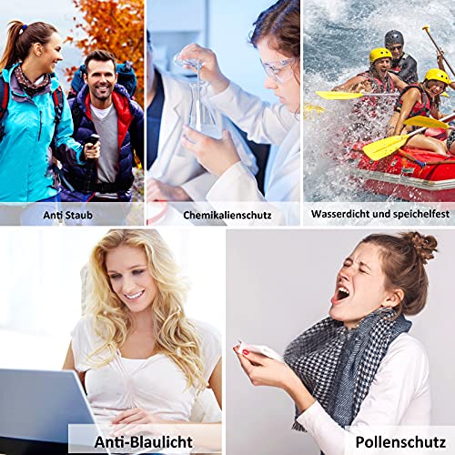 【GILT FÜR VIELE GELEGENHEITEN】 -Sicherheitsgläser können Blaulicht, Speichel, Pollen, Staub usw. verhindern. Nützlich zum Pendeln, Gehen, Camping, Putzen, täglichen Leben oder zum Spielen von Computern, Fernsehen, Spielen von Mobiltelefonen und Arbeiten und andere Gelegenheiten.