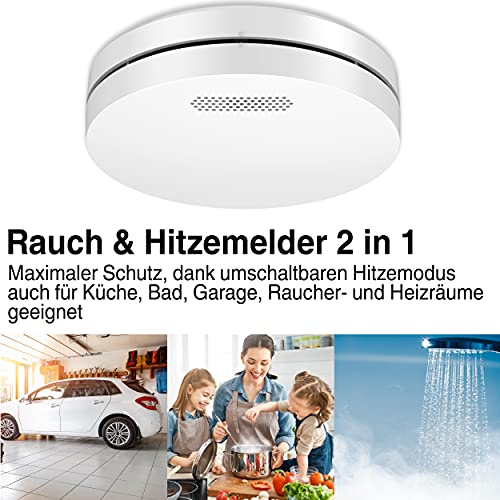 Specification: ALPENLUFT Rauchmelder Funk Vernetzt 10 Jahre Batterie, Rauchwarnmelder & Hitzemelder 2in1, Feuermelder, Brandmelder, Funkrauchmelder Vernetzbar | Ohne Bohren, Kein LED Blinken