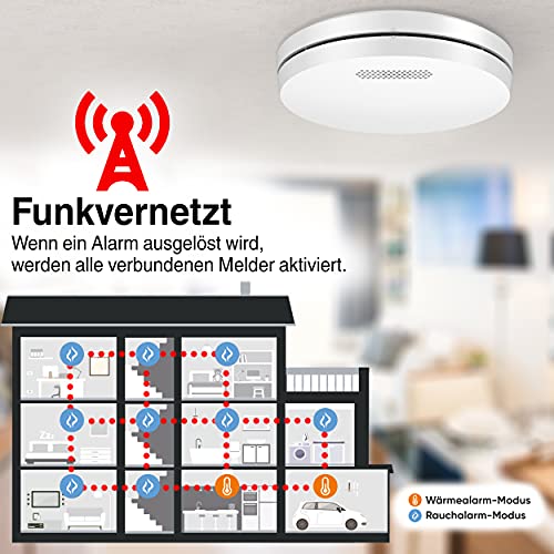 🛡️ ÜBERALL FUNKVERNETZT – Egal in welchen Raum Sie sich befinden. Anwesende Personen im Haus werden sofort gewarnt und nicht erst, wenn der Rauch einen Melder in ihrer Nähe erreicht hat.