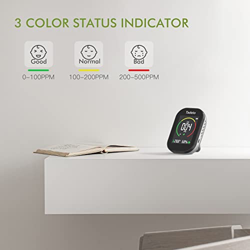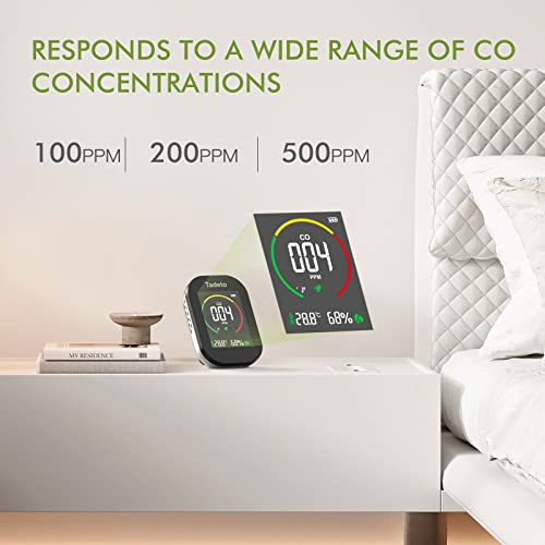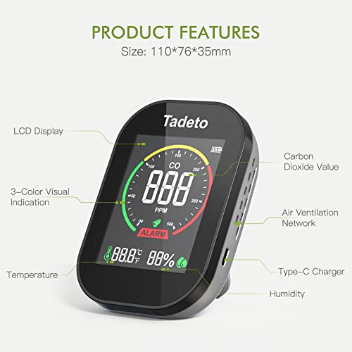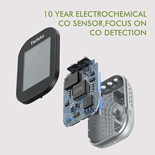 CO Melder, Tadeto 3 in 1 Kohlenmonoxid Melder mit Umgebungstemperatur und Luftfeuchtigkeit, 3,5″ Großer Bildschirm mit Akustischem und Optischem Alarm