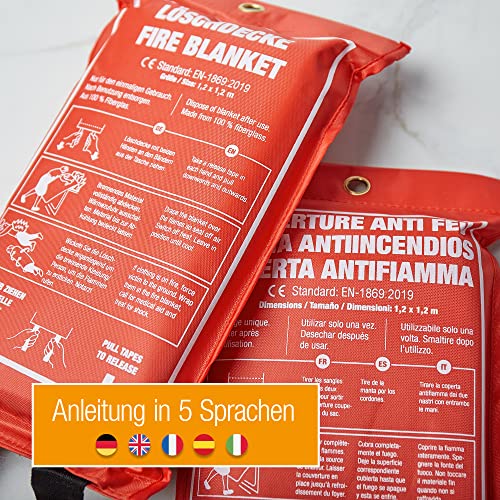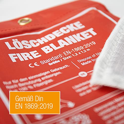 Amazy Löschdecke (XL| 1,2 x 1,2 m) zur Ersten Hilfe inkl. Schutztasche und Haken zur Aufhängung – Brandschutzdecke nach DIN EN 1896 zum Löschen von Entstehungsbränden | Anleitung in 5 Sprachen