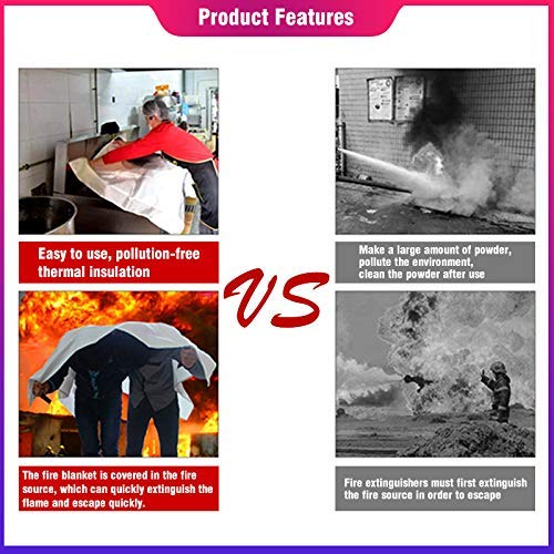 ★ VERSCHIEDENE ORTE: 100% Glasfasergewebe. Notfall-Überlebens-Feuerdecke, ideal für Küche, Kamin, Grill, Auto, Camping und so weiter.