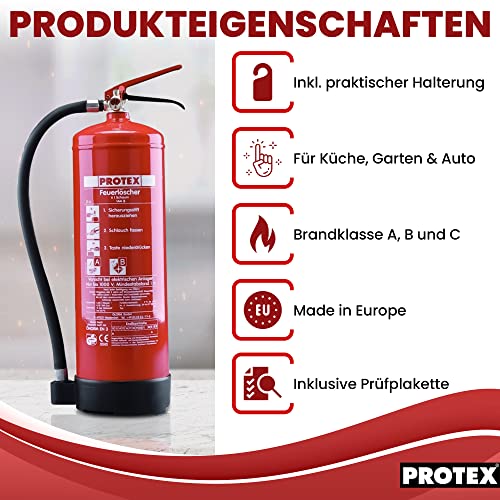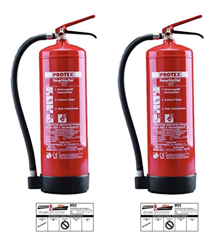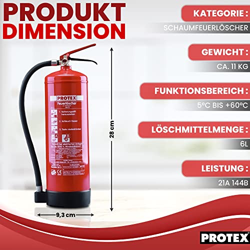 Specification: 2 Schaum-Feuerlöscher – Protex Schaumfeuerlöscher – 6 Liter – für die Brandklassen A und B – Zertifiziert nach DIN EN 3 – je 11 kg – mit praktischer Halterung – mit Prüfplakette – Made in EU