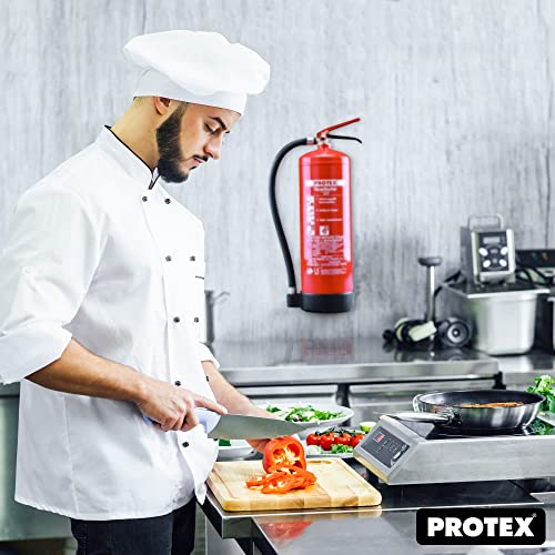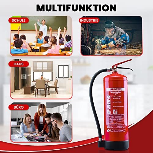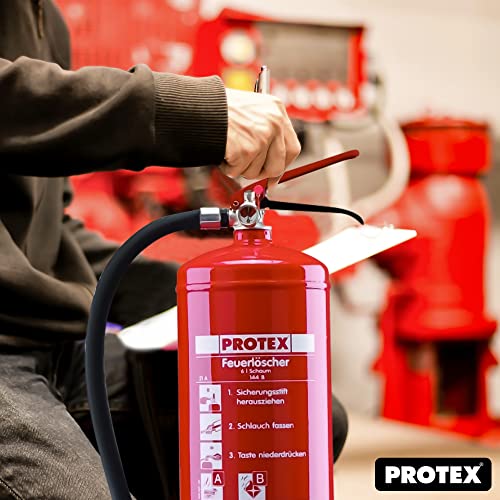 2 Schaum-Feuerlöscher – Protex Schaumfeuerlöscher – 6 Liter – für die Brandklassen A und B – Zertifiziert nach DIN EN 3 – je 11 kg – mit praktischer Halterung – mit Prüfplakette – Made in EU