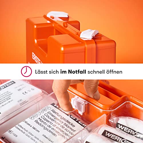 EIN RETTER IM NOTFALL – Bei ernsten Unfällen oder Verletzungen müssen Sie schnell handeln und helfen können, um Verletzte oder sich selbst zu verarzten. Hierfür haben wir speziell den WERKSTEIN Verbandskasten entwickelt, der ein Segen im Notfall ist.