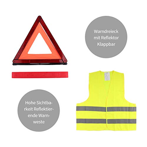 3 IN 1 Set – Unfall Grundausstattung für einen Notfall. Erste Hilfe Set DIN13164 mit warndreieck und warnweste.