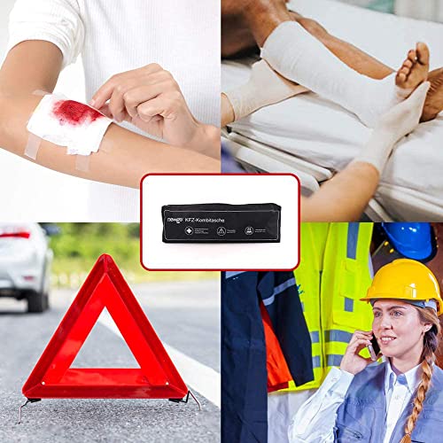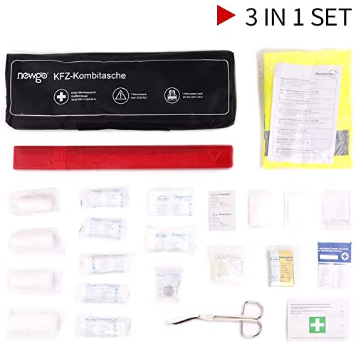 NEWGO 3 in 1 Erste Hilfe Set Auto 2023/2024 KFZ Verbandkasten nach DIN 13164 mit Warnweste und Warndreieck, Auto Erste Hilfe Set 2023/2024 Tüv