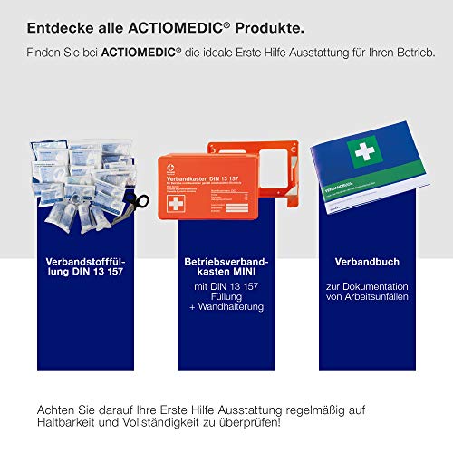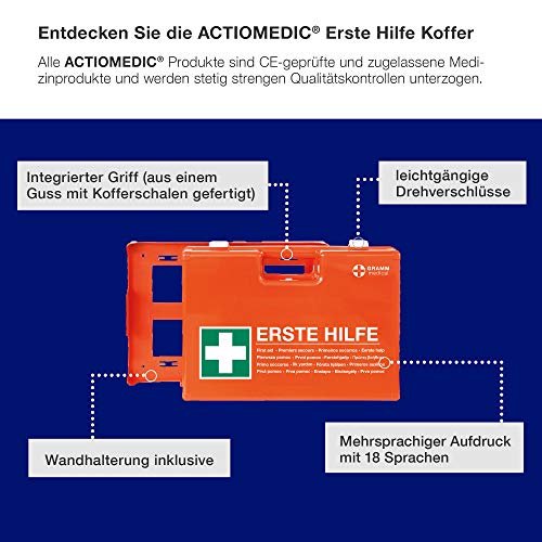Specification: ACTIOMEDIC Mobiler und stationärer Erste-Hilfe-Kasten mit Wandhalterung zur Aufbewahrung, DOMINO DIN 13157:2021 I Hypoallergene Pflaster, mehrsprachig, Visuelle Hilfsmittel, orange, 28 x 12 x 20 cm