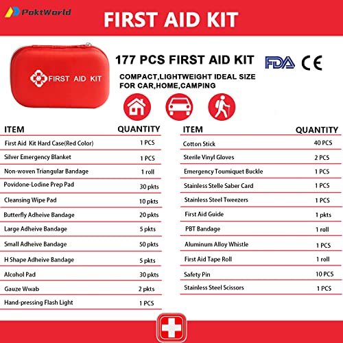 【Sicherheit und Zuverlässigkeit】 Insgesamt 177 Stück und 23 Arten von medizinischen und Notfall Artikel mit separaten Paket,Alle unsere Produkte sind nach ISO 13485, CE und FDA zugelassen, um die Konformität mit globalen Standards zu gewährleisten, wo immer sie verwendet werden.