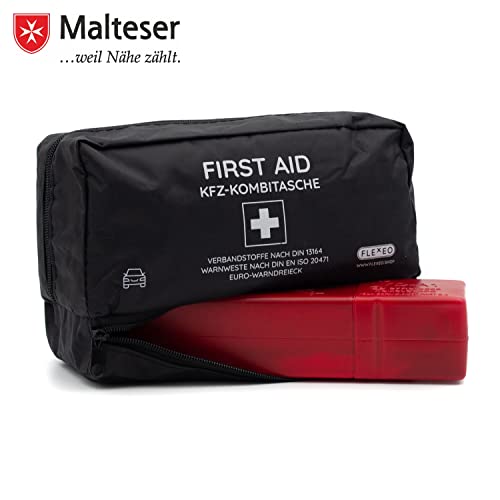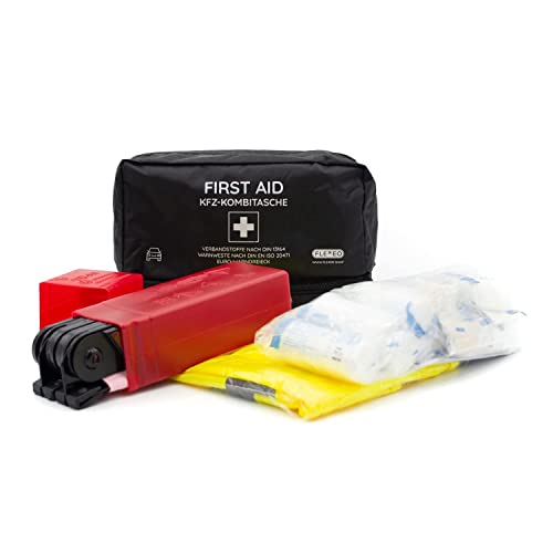 Specification: KFZ-Verbandtasche inkl. Warndreieck und Warnweste nach DIN 13164:2022 | Gültig für 2023 | Verbandkasten / Erste Hilfe Set für PKW / Auto / Motorrad | schwarz | hohes Format