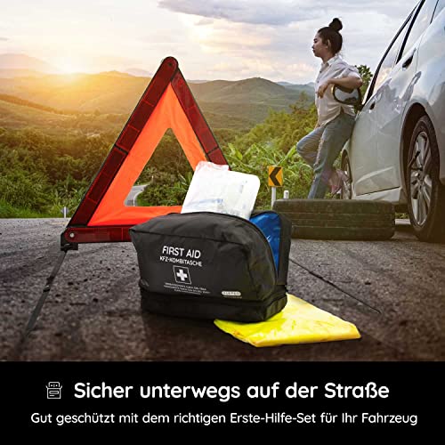 KFZ-Verbandtasche inkl. Warndreieck und Warnweste nach DIN 13164:2022 | Gültig für 2023 | Verbandkasten / Erste Hilfe Set für PKW / Auto / Motorrad | schwarz | hohes Format
