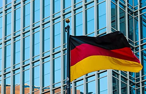 Specification: Bundes und Deutschland Fahne Deutsche Flagge mit Messing-Ösen 90 * 150cm 210D Nylon-Material mit Genähten Streifen Premium Wetterfeste Flaggen für Draußen und Drinnen
