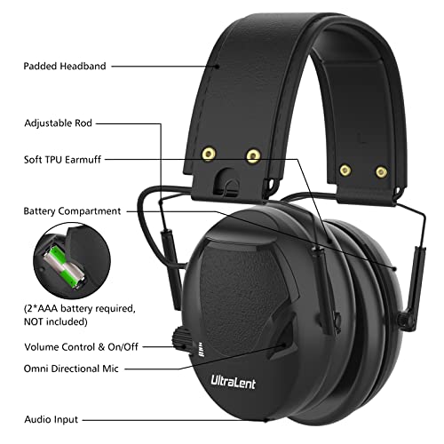 Specification: UltraLent Elektronisches Schiessen Gehörschutz – Verstellbare Klapp Ohrenschützer Lärmminderung Schallverstärkung Kapselgehörschutz für Schießen und Jagen,SNR 25 dB (Schwarz)