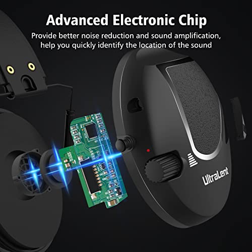 UltraLent Elektronisches Schiessen Gehörschutz – Verstellbare Klapp Ohrenschützer Lärmminderung Schallverstärkung Kapselgehörschutz für Schießen und Jagen,SNR 25 dB (Schwarz)