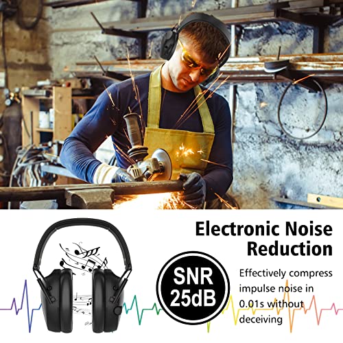 【Aktive Elektronische Ohrenschützer】 Der eingebaute Chip hilft den Ohrenschützern, schädliche Geräusche unter 0,01 s aktiv zu unterdrücken und die leisen Geräusche zu verstärken, die Sie hören möchten, sodass Sie ein klares Gespräch führen und gleichzeitig einen zuverlässigen Gehörschutz bieten können. Außerdem helfen Ihnen die omnidirektionalen Mikrofone, den Schallort zu identifizieren, und sorgen für ein hervorragendes Situationsbewusstsein. (SNR 25dB)