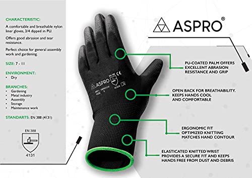 Specification: ASPRO Arbeitshandschuhe 20 Paar Größe 8 (M)- Gartenhandschuhe-Schwarze Nylon-Handschuhe mit PU-Beschichtung für Bauarbeiter, Gärtner, Mechaniker, Bauarbeiter, Lagerarbeiter etc.