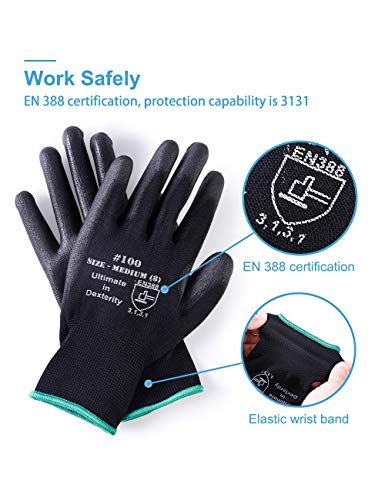 Donfri 12 Paar Arbeitshandschuhe Gartenhandschuhe Schutzhandschuhe werkstatt handschuhe Mit PU beschichtet fr Garten und Montagehandschuhe multifunktional (8/M)