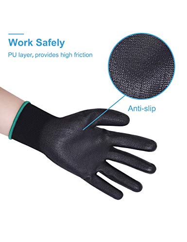 🔧Dieses Produkt hat 12 Paar Handschuhe (davon 24 linke und rechte Hände).【Produktbeschreibung】Die Handfläche wird mit einer PU-Beschichtung versehen. Es ist elastisch und verschleißfest, so dass die Handfläche nicht leicht durchstochen werden kann. Die Beschichtung ist wasserdicht, was die Dichtheit der Handschuhe weiter verbessert und Flecken und Bakterien wirksam isoliert. Rutschfest, erhöht die Reibung, verhindert das Verrutschen von Gegenständen und bietet mehr Sicherheit.