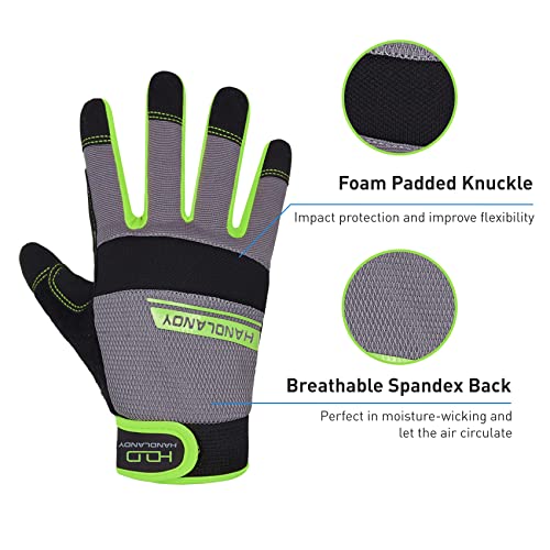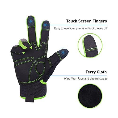 FACELANDY Arbeitshandschuhe für Herren und Damen, ultraleicht, für Mechaniker, Gartenarbeit mit Touchscreen (L, Grün)