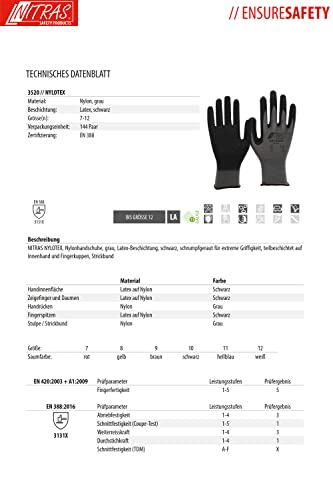 Specification: NITRAS Nylotex 3520 Nylon-Latexhandschuhe Arbeitshandschuhe 12 PAAR Größe 10 (XL), Grau/Schwarz