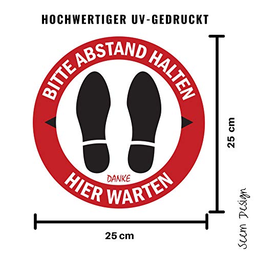 PRAXIS Abstand Halten Aufkleber: Mit Seem geben soziale Bodenabstandsaufkleber Ihren Kunden, Mitarbeitern und Gästen eine klare Botschaft: Danke, Bitte Abstand Halten, Hier Warten NEUES Abstand Halten Aufkleber Fußboden: Bitte Abstand Halten Aufkleber wurden speziell von Fachleuten Sie sind drinnen und draußen mit hellen und lebendigen Farben sichtbar. Hochwertige Vinyl-Aufkleber lassen sich leicht abziehen und auf den Boden kleben. Leicht zu reinigen und rückstandsfrei zu entfernen PREMIUM QUALITÄT: In Gehwege, Warteschlangen, Eingänge und Leitungen stellen. Mit selbstklebendem Material, das den Boden für corona aufkleber, corona hinweisschild, abstand halten schild, bodenaufkleber abstand halten, schilder corona. MATERIAL und GRÖSSE: Alle Bodenaufkleber sind UV-gedruckt auf Vinyl-PVC-Glanz und werden dauerhaft und doppelt laminiert. Corona Aufkleber sind UV-geschützt, wasserdicht und lichtbeständig. Seem abstand halten aufkleber – 8 stück – 25 x 25 cm für Geschäfte, Büro, Geschäft, Apotheke, Einzelhändler, Kliniken und mehr .. SEEM garantiert 100% Kundenzufriedenheit: Alle Seem Bestände werden von Seem entworfen und hergestellt und unseren lieben Kunden angeboten. Bitte beachten Sie, dass wir immer für Sie da sind, um Ihnen bei Ihren Fragen und Bewertungen zu helfen.