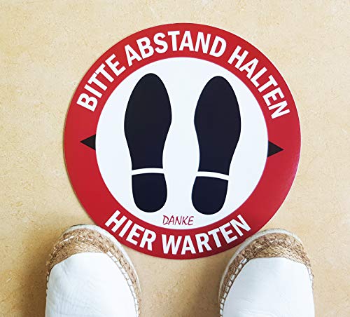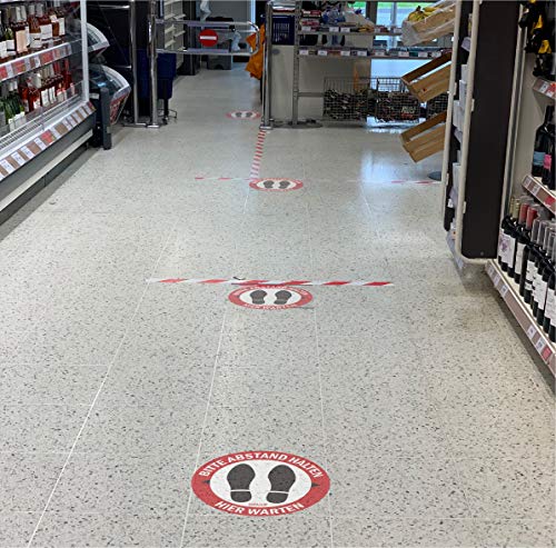 PREMIUM QUALITÄT: In Gehwege, Warteschlangen, Eingänge und Leitungen stellen. Mit selbstklebendem Material, das den Boden für corona aufkleber, corona hinweisschild, abstand halten schild, bodenaufkleber abstand halten, schilder corona.