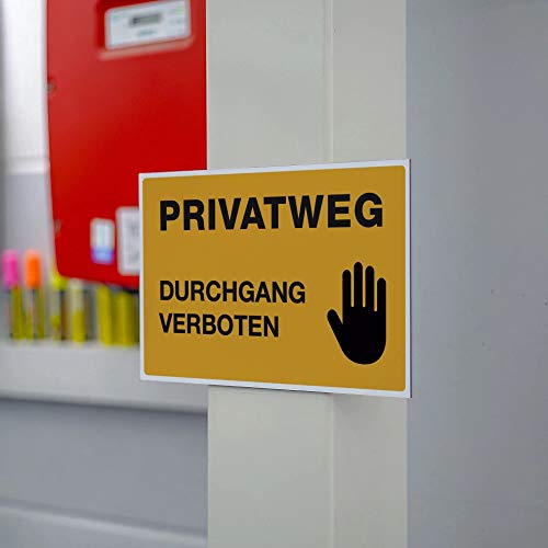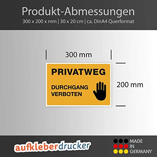 Specification: (Signalgelb, Schild Alu-Verbund 300x200x4 mm) Hinweis-Schild/Text: PRIVATWEG – DURCHGANG VERBOTEN/Schild für Privatgrundstück/Betreten verboten/Kein Durchgang