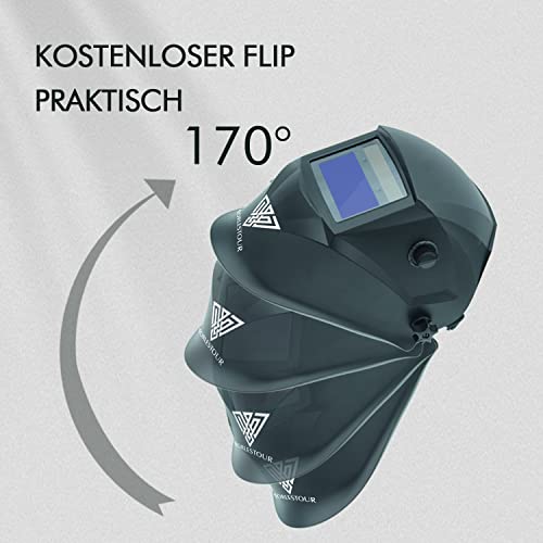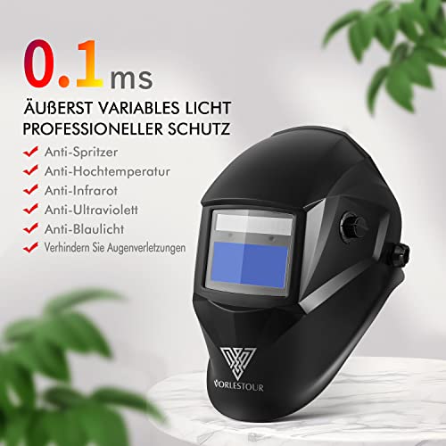 Specification: Schweißhelm Automatik, Solar-/Batteriebetrieb Schweisshelme Automatik, Vollautomatisch Abdunkelnd mit Einstellbaren Parametern, Geeignet für SMAW-, MIG-, MAG-, Wig-, GTAW-Schweißen und Schleifen
