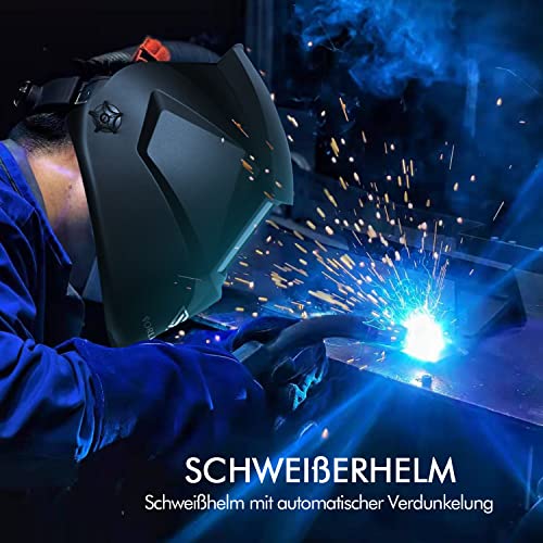 Schweißhelm Automatik, Solar-/Batteriebetrieb Schweisshelme Automatik, Vollautomatisch Abdunkelnd mit Einstellbaren Parametern, Geeignet für SMAW-, MIG-, MAG-, Wig-, GTAW-Schweißen und Schleifen
