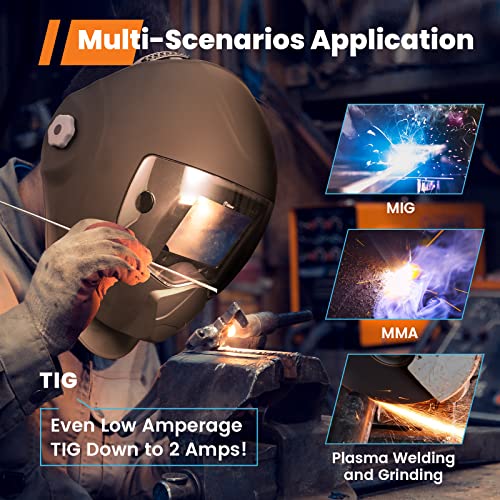 【Multifunktionelle Anwendungen】- Die Modus-Taste bietet Ihnen einen flexiblen Farbbereich sowohl zum Schleifen als auch zum Schweißen. Mehrere Optionen für 5-8/9-13 Farbtöne sind ideal für vielseitige Bedingungen, z.B TIG (induzierendes TIG mit niedriger Amperezahl bis zu 2 Ampere), MIG, MMA oder Plasmaschweißen.
