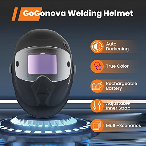 Specification: Solar/USB-C Auto-Verdunkelung Schweißhelm, GoGonova Echtfarbe Schweißmaske mit 100 * 70mm Sichtfeld, 4 Sensoren, geeignet für SMAW, MIG, TIG, GTAW, Schleifen