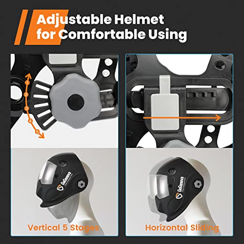 【Anpassbarkeit & Leichtgewicht】- Verstellbares Kopfband sorgt für Sicherheit und Komfort bei Schweißen mit dem Automatik Schweißhelm. 5-stufige und das horizontal verschiebbare Design helfen Ihnen, die richtige ergonomische Position zu finden.