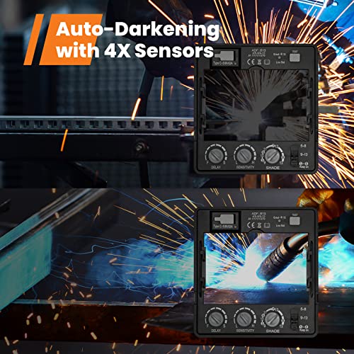 【Automatische Verdunkelung】- Gogonova Automatik Schweißhelm verfügt über 4 leistungsstarken Lichtbogensensoren, die sich in Millisekunden automatisch umschalten können, um den möglichen Augenverletzungen zu vermeiden.