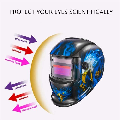 Specification: Automatisch verdunkelnd Solar Schweißmaske Schweißhelm, 9-13 DIN Einstellbar, Verzögerte Dimmbar, 5 Stück Ersatzgläser, für MIG, MAG, Schweißen Schneiden (Amerikanischer Adler)