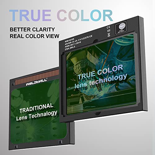 Specification: WELDMALL Große Ansichtmit Echtfarben automatischer Verdunkelung, 4 Lichtbogensensoren, breit Einstellbarer Schirm, DIN 5–9/9–13, für Wig-MIG-ARC Lichtbogenschweißschleifer WM-Q108U