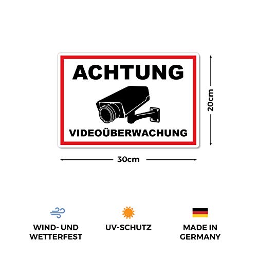 Specification: 2 Stück Achtung Videoüberwachung Schild 20 x 30 cm aus stabiler PVC Hartschaumplatte 3mm dieser Bereich wird überwacht Schild mit UV-Schutz von STROBO