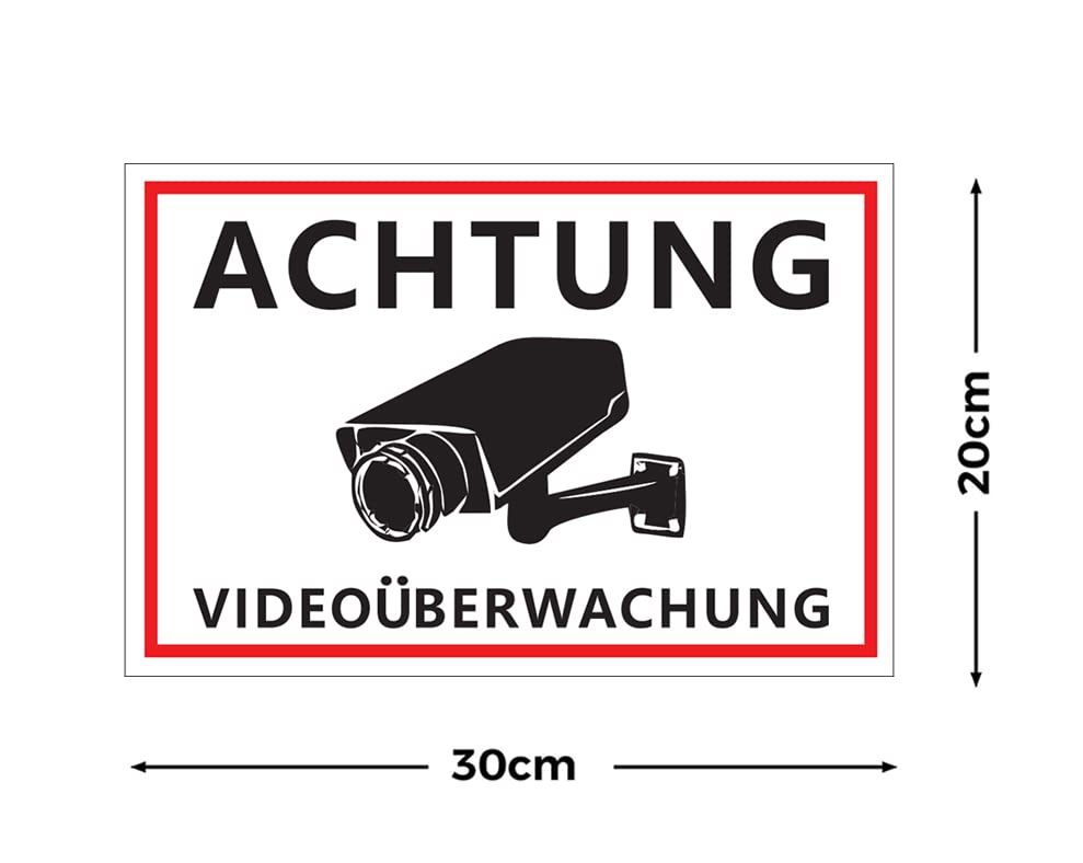 Größe: Die Schilder Videoüberwachung haben eine Größe von 20 x 30 cm. Damit sind sie gut sichtbar, stören aber auch nicht den Gesamteindruck
