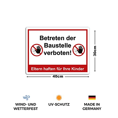 Specification: 3 Stück XXL Betreten der Baustelle verboten Schild 40 x 30 cm Eltern haften für ihre Kinder ! aus stabiler PVC Hartschaumplatte 5 mm mit UV-Schutz von STROBO