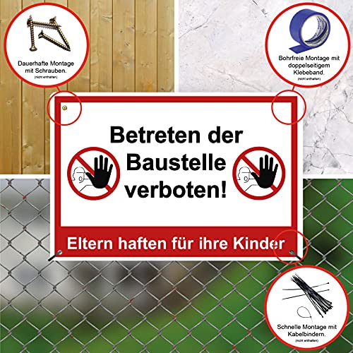 3 Stück XXL Betreten der Baustelle verboten Schild 40 x 30 cm Eltern haften für ihre Kinder ! aus stabiler PVC Hartschaumplatte 5 mm mit UV-Schutz von STROBO