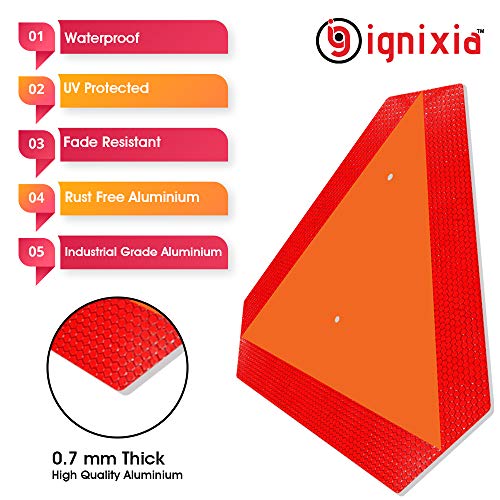 Specification: Ignixia Langsam bewegendes Fahrzeugschild, 0.7 mm dick, rostfreies Aluminium, langsam bewegende Fahrzeug-Dreiecksschilder, 35.6 x 40.6 cm, UTV, Sicherheitsschilder in Industriequalität