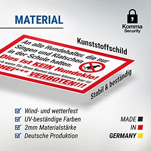 Komma Security Singen Klatschen Kein Hundeklo Schild Hunde kacken verboten – Verbotsschild Hundeverbotsschild Verbot Hundeklo Hundekot Hundehaufen Hundekacke
