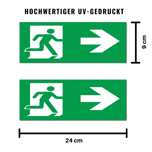 Notausgangsschild 5 stück Premium Aufkleber- 24 cm x 9 cm Flucchtwegschild – Schild Notausgang Aufkleber- für Infoschild, Rettungsweg, Fluchtweg, Notausgang, Sicherheitsmarkierung (Pfeil →)