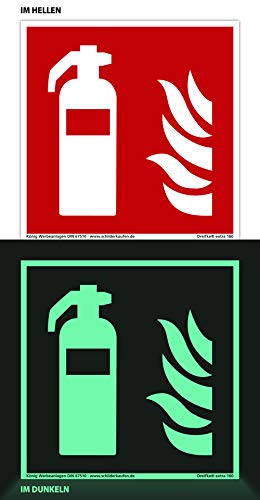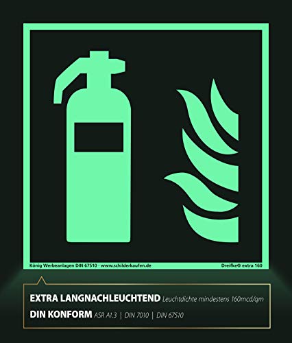 Specification: Schild Feuerlöscher | extra langnachleuchtend | PVC selbstklebend 148x148mm | DIN EN ISO 7010 F001 | DIN 67510 (Brandschutzzeichen) Dreifke® extra 160