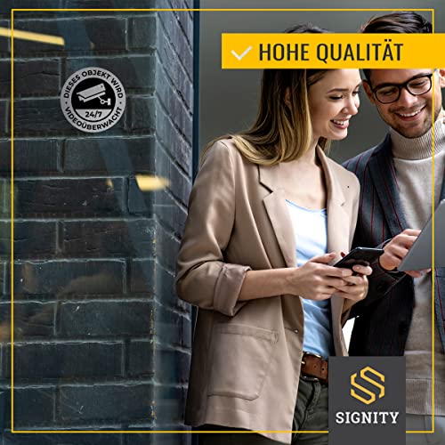 SIGNITY Alu Schild Videoüberwachung (fi 120mm klein) – Warnschild Kamera Überwachung – ideal zur Kamera Attrappe – Aluminium Schild – Achtung Videoüberwachung für Privatgrundstück