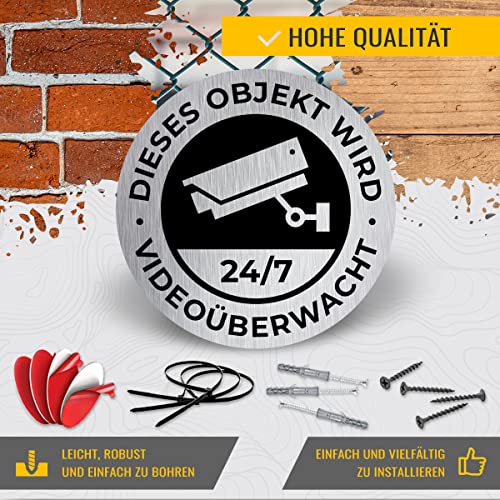 Specification: SIGNITY Alu Schild Videoüberwachung (fi 120mm klein) – Warnschild Kamera Überwachung – ideal zur Kamera Attrappe – Aluminium Schild – Achtung Videoüberwachung für Privatgrundstück