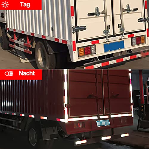 [Reflektorbänder]: Verwendet prismatische Reflexionstechnologie mit hoher Reflexionseffizienz und hoher Sichtbarkeit auch bei Fernlicht, sodass andere Fahrzeuge Ihr Fahrzeug rechtzeitig erkennen und sie daran erinnern können, einen sicheren Fahrabstand einzuhalten, wodurch die Fahrsicherheit bei Nacht verbessert wird.