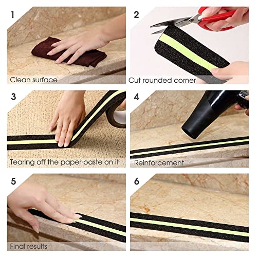 [Perfekt Größe] 5m x 5cm Sicherheitswarnband für Treppen, kann genügend Abdeckung bieten, gute Flexibilität, kann in eine geeignete Größe geschnitten werden, um verschiedene regionale Anforderungen zu erfüllen. Einfach zu installieren und zu verwenden, einfach die Folie abziehen und Blasen wegrollen.