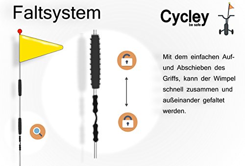 Um eine optimale Sicherheit im Schtraßenverkehr zu garantieren, wurde der CYCLEY Fahrradwimpel nach den Richtlinien vom ADFC (Allgemeiner Deutscher Fahrrad Club) herstestellt.