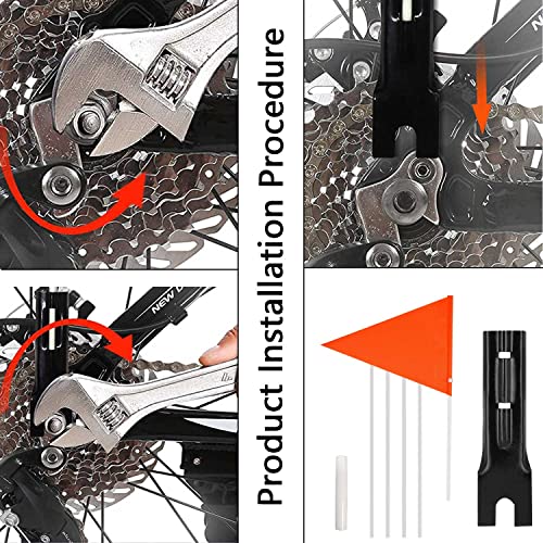 【Einfache Installation】:Die Fahrradfahne wird an der Hinterachse des Fahrrads montiert. Einfach die Radmutter lösen, den Wimpel einsetzen und die Radmutter festziehen. Die Montage ist schnell und einfach.