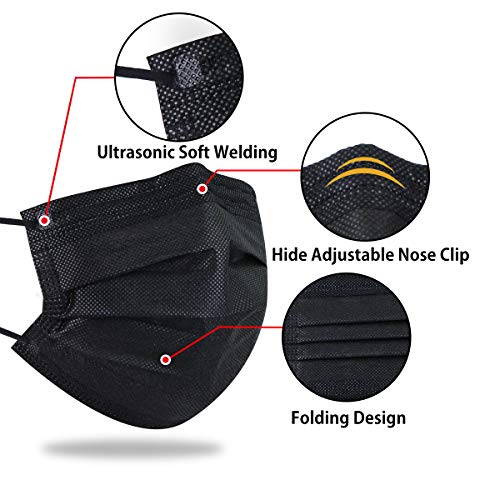 Specification: DIOLV 50 Stück Einwegmasken Erwachsene 4-lagige Atmungsaktive Nasen und Mundschutzmaske Dehnbare Elastische Ohrschlaufen Schwarz